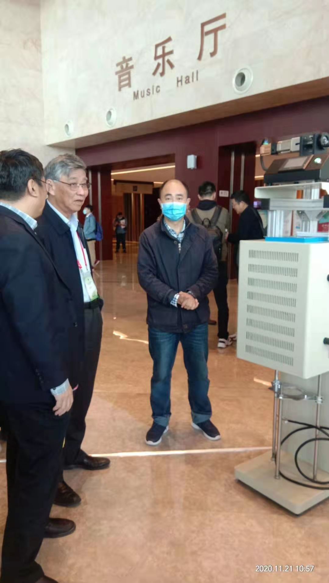 我公司工程师在第二届人工晶体学术会议上向祝世宁院士介绍晶体生长炉